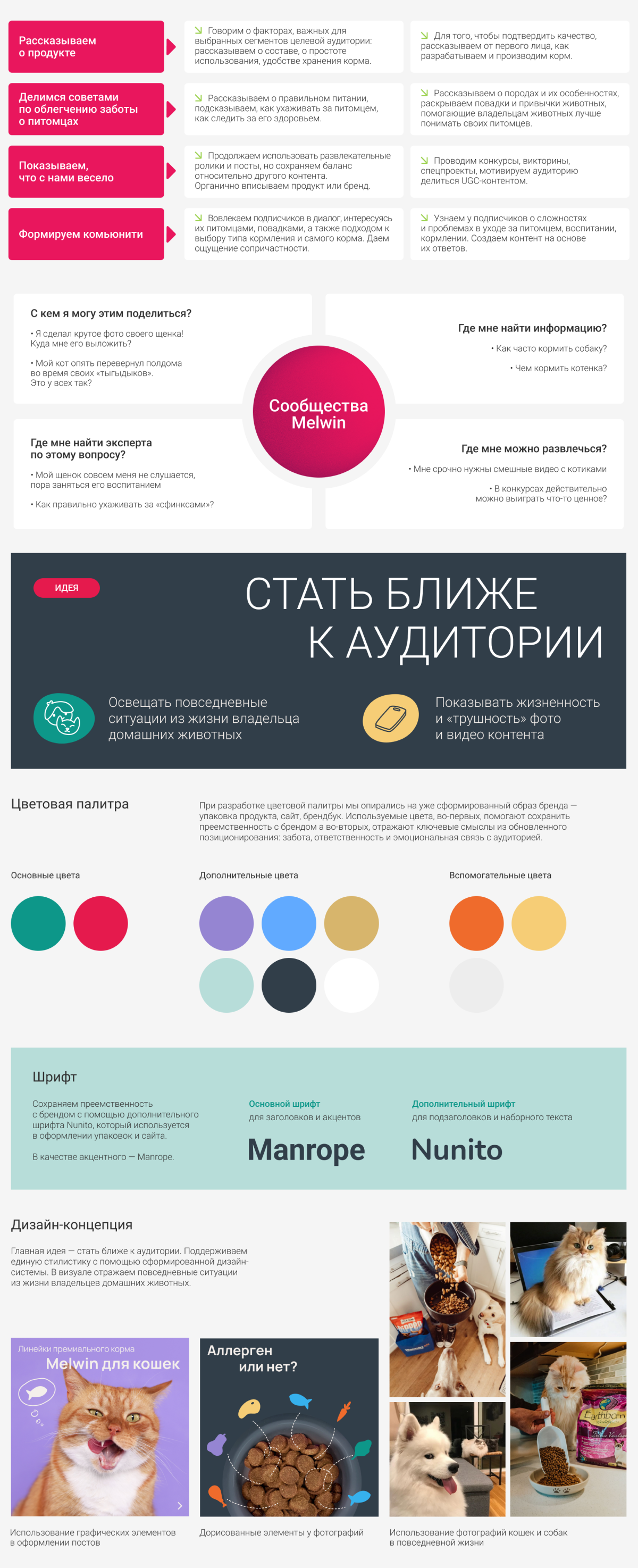 Melwin — премиальный корм для собак и кошек от группы компаний «Мелком». Клиент обратился к нам, чтобы актуализировать аналитику, глубже понять свою аудиторию и обновить SMM-стратегию.