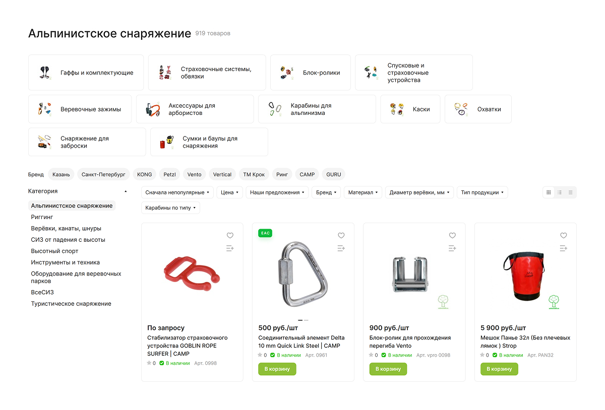 История Arbostuff началась с простой идеи: собрать в одном месте все необходимое снаряжение для промышленных альпинистов и арбористов. Веревки, карабины, страховочные системы, специальные инструменты — все, что нужно для безопасной работы на высоте. Но со временем сайт, работавший на Аспро: Максимум, стал выглядеть устаревшим: