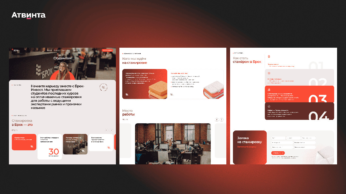 Компания заинтересована в привлечении молодых кадров, поэтому мы сделали отдельную страницу для студентов. Они могут пройти стажировку в «Брок-Инвест-Сервис» и в дальнейшем устроиться на полную ставку.