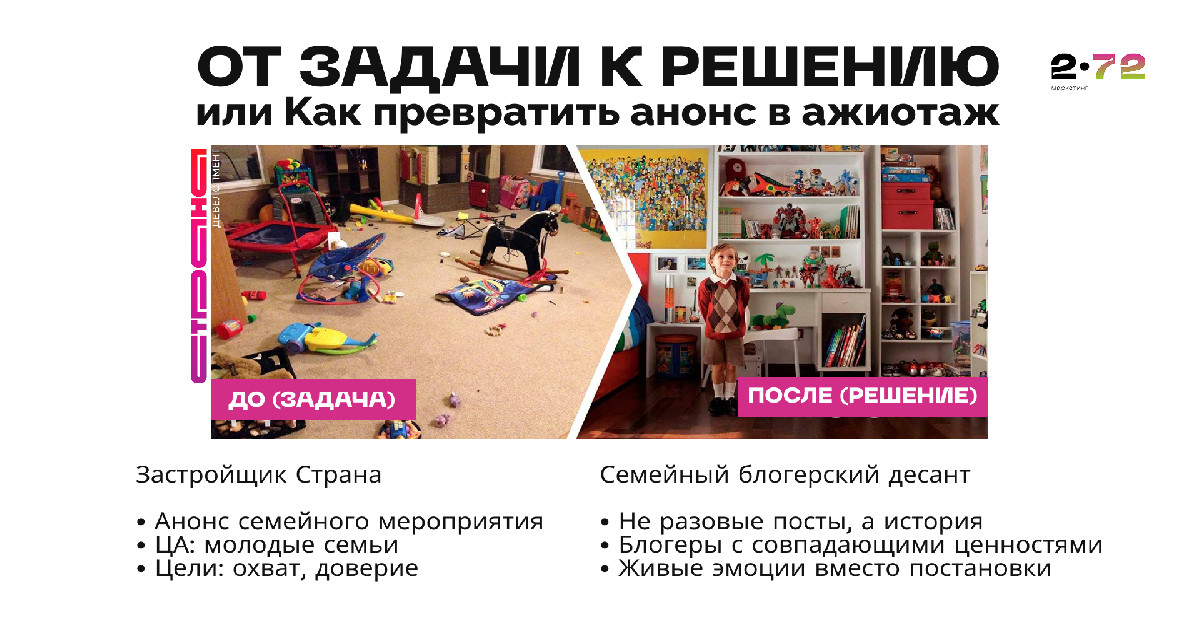 Мы отказались от разовых постов и сделали ставку на партнерства с семейными блогерами, чьи ценности совпадают с концепцией семейного счастья от «Страны Девелопмент».