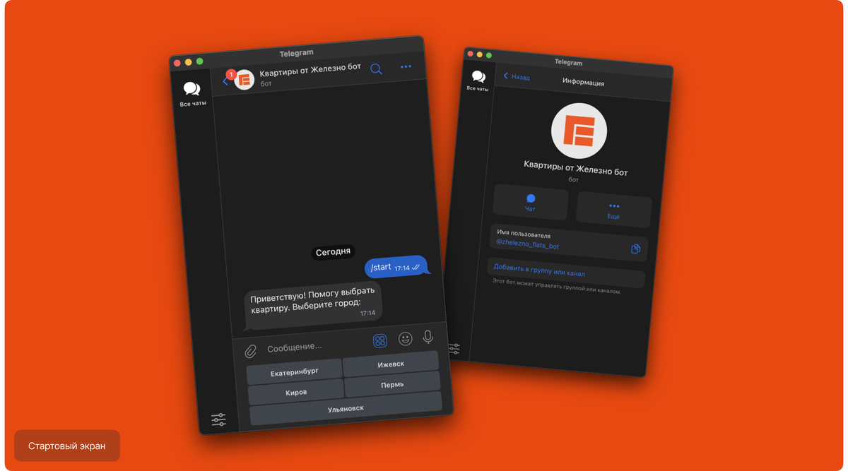 Сделали для крупного федерального девелопера «Железно» Telegram-бот, который подбирает квартиры по индивидуальным предпочтениям пользователей. Бот работает как тест, где человек выбирает нужные характеристики будущего жилья, а в конце получает ссылку на реальный объект застройщика в продаже.