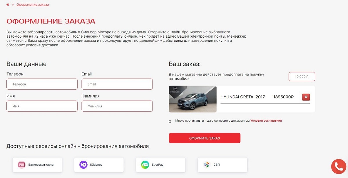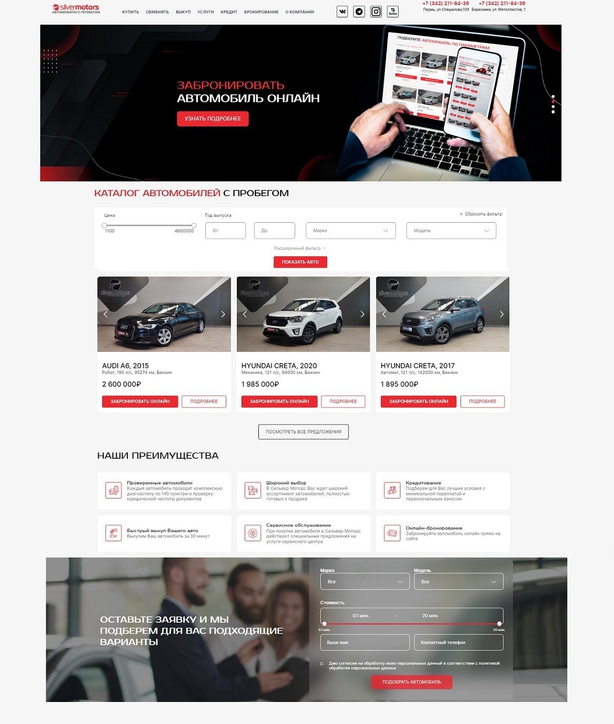 Корпоративный сайт с функциями интернет магазина для "Сильвер Моторс"