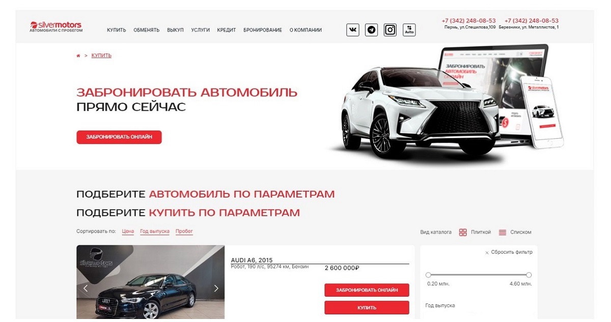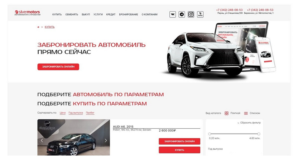 Новый сайт стал полноценным виртуальным офисом компании, который работает круглосуточно, привлекает целевых клиентов и значительно упрощает процесс купли-продажи автомобиля.
