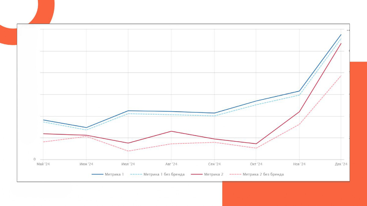 Положительная динамика сохраняется. Так, в январе 2025 г. продолжился рост суммарного небрендового трафика. И по завершении «горячего сезона» показатели остаются выше прошлогодних.