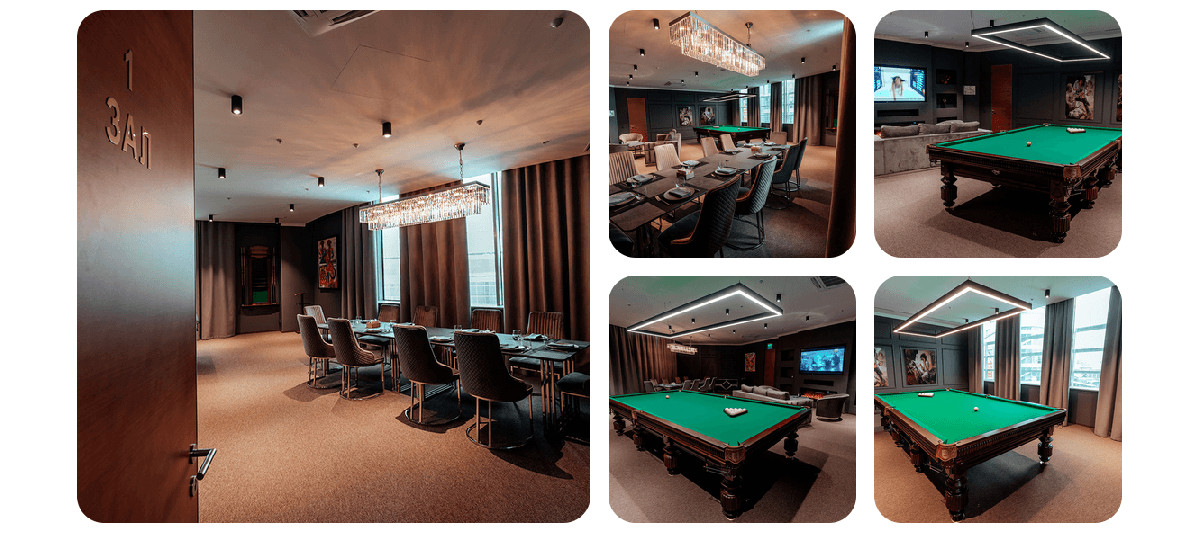Бильярдный клуб №1 – это зал 600 м² и 7 VIP залов, кухня в европейских традиция, караоке с профессиональным звуком. Расположен в центре Москвы, м. Киевская