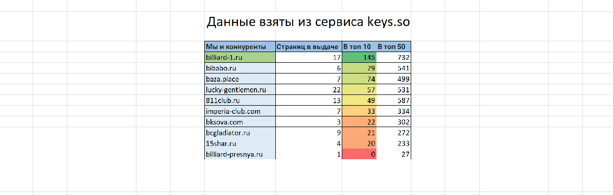Заказчик предоставил список сайтов конкурентов. Мы со своей стороны проанализировали список конкурентов заказчика + посмотрели сайты других конкурентов.