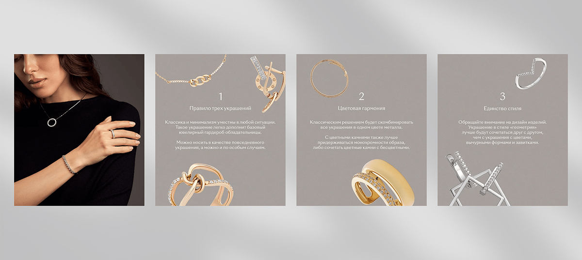 - Полезные посты — советы по выбору идеального кольца с бриллиантом и сочетанию украшений, правила ювелирного гардероба и другие полезности с подборками подобных украшений.
