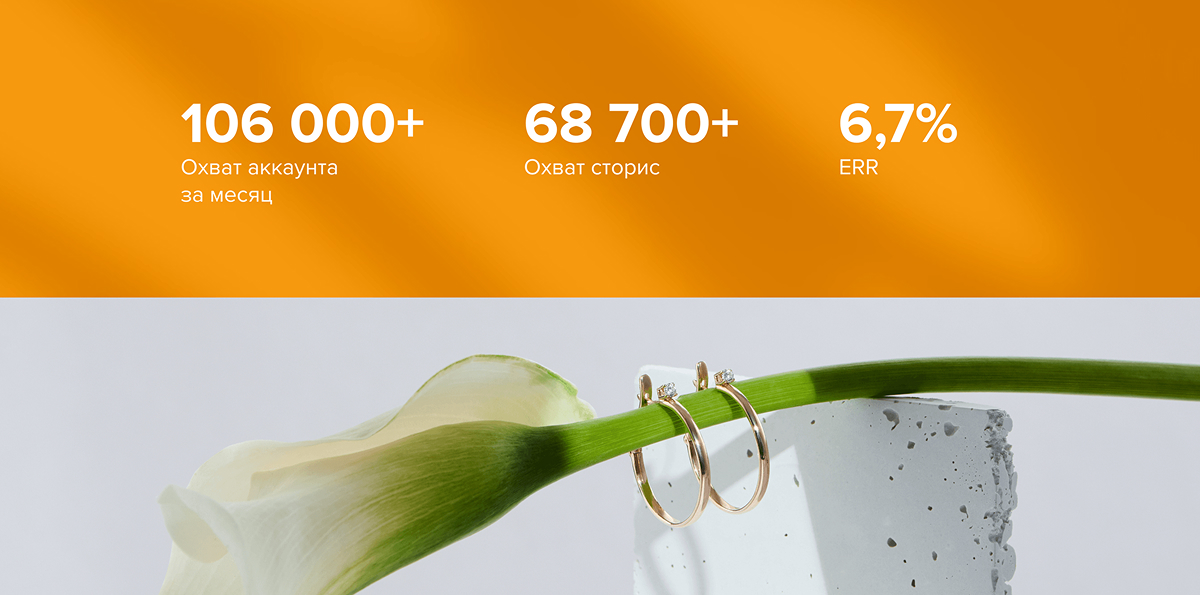 При разработке тематических рубрик и контент-плана мы делали акцент не только на демонстрации красоты украшений, но и на полезном, развлекательном контенте, как в постах, так и в сторис. Все это благоприятно повлияло на вовлеченность аудитории.