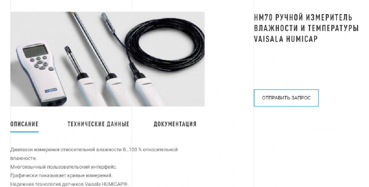 Задача метеорологического оборудования — измерять. А значит, ему понадобится описание, технические данные и прилагающаяся документация. По этим категориям мы и структурировали информацию о приборах в карточке.