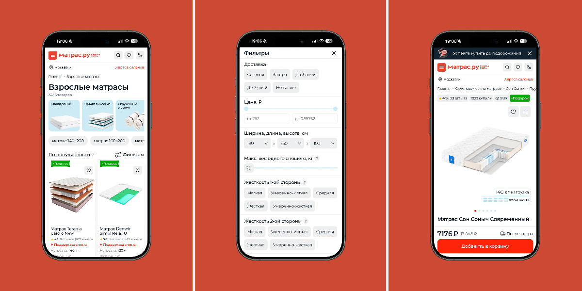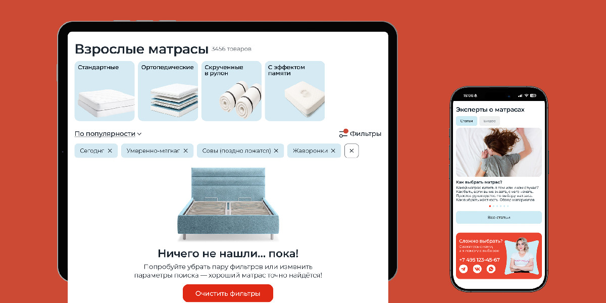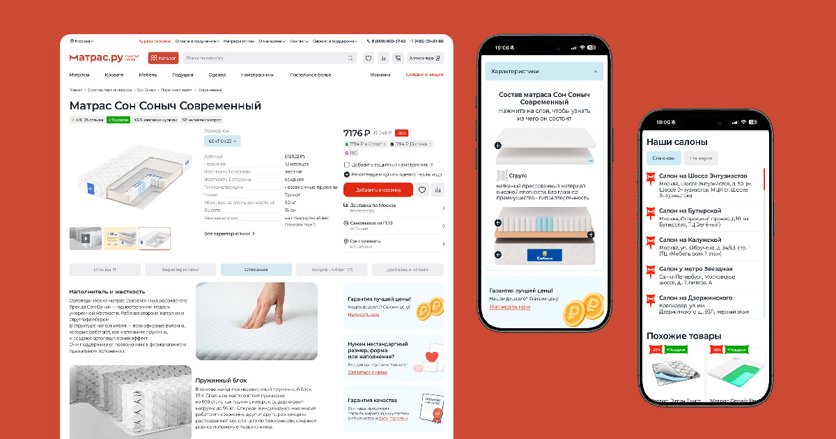 В рамках проекта для Матрас.ру мы полностью обновили технологическую основу интернет-магазина: перевели фронтенд на Nuxt.js, бэкенд — на Go, создали единый UI-kit и автоматизировали ключевые бизнес-процессы. Благодаря этому сайт стал быстрее, стабильнее и удобнее для пользователей, а команда получила гибкие инструменты управления контентом, ценами и акциями. Проект вывел Матрас.ру на новый уровень управляемости и готовности к масштабированию.