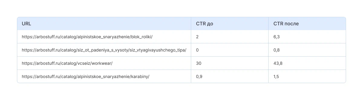 3. Магия привлекательных сниппетов. Мы заметили, что у многих страниц был катастрофически низкий CTR (всего 0-2%). Проблема была в том, как страница выглядела в поисковой выдаче. Сделали сниппеты лучше: добавили рейтинг в виде звездочек, количество отзывов, эмодзи и диапазон цен. Сначала протестировали гипотезу на нескольких страницах, а после успеха — масштабировали. В итоге CTR по некоторым страницам взлетел до 13,8%.