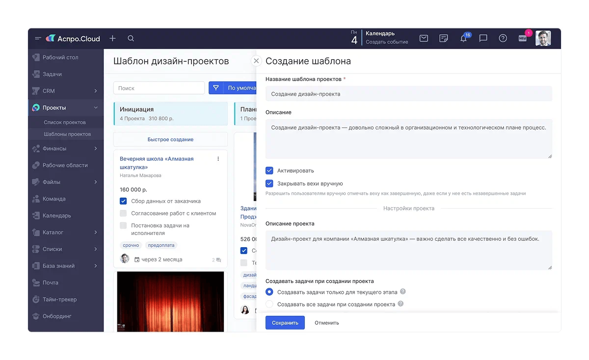 Все задачи, финансы и клиенты — в едином пространстве Аспро.Cloud. Система избавляет от рутины и экономит часы каждый день. Получите 14 дней бесплатного доступа и настройте работу так, как удобно команде.