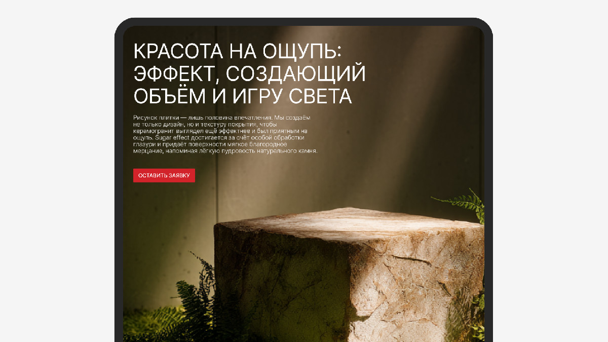 — редизайн сайта: главная страница, лендинги под новые коллекции и форматы плитки;