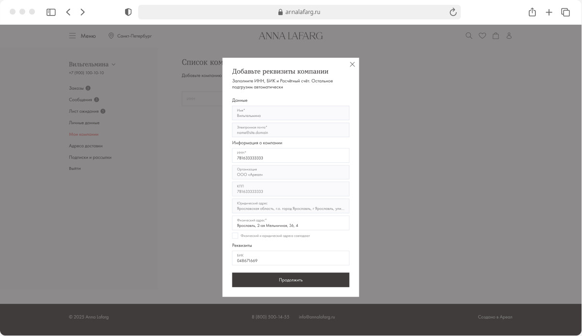 Новая e-commerce площадка для бренда Anna Lafarg за пять месяцев