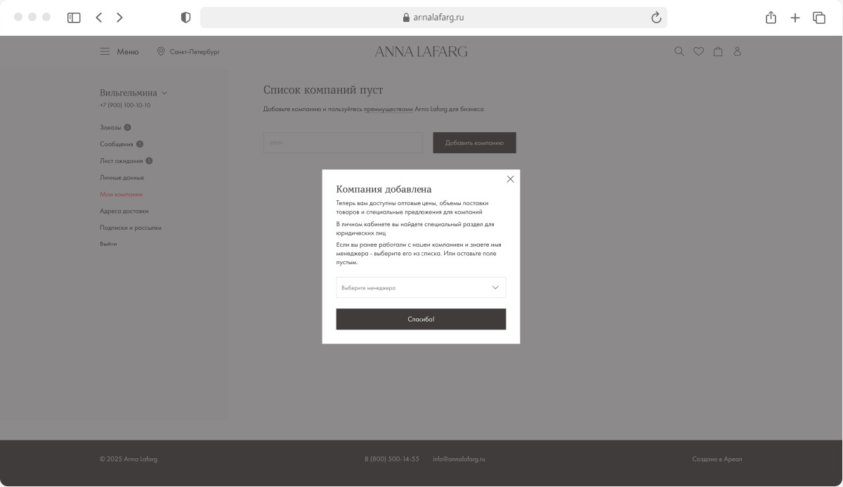 Anna Lafarg обратилась в Ареал с четким запросом: