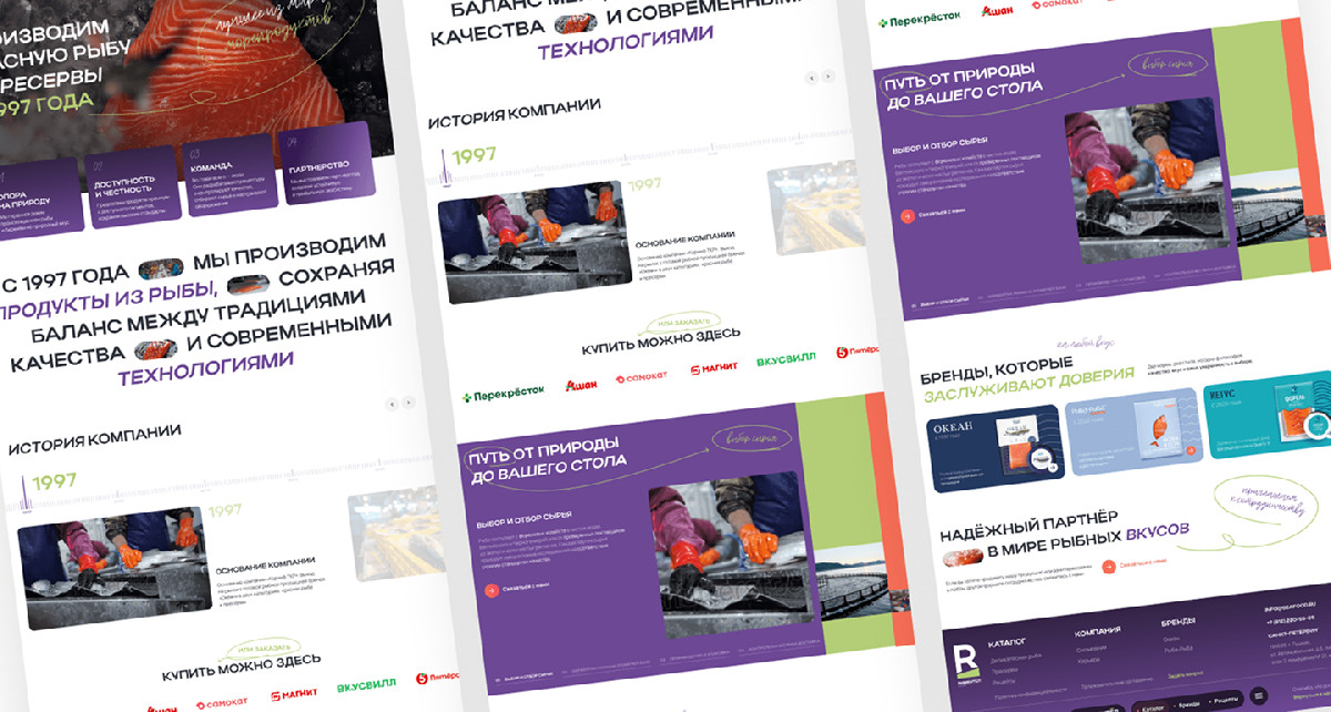 Главная задача проекта — выделиться среди десятков однотипных «рыбных» сайтов. Мы изучили отрасль, брендбуки конкурентов и поняли: сайт должен быть живым, с характером и историей.