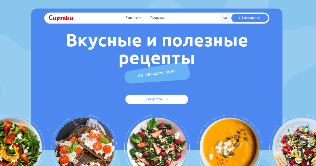 Чтобы реклама работала на полную, сайт должен быть современным, удобным и визуально привлекательным. Аудитория у продукта разновозрастная, поэтому дизайн должен быть ярким, но понятным. Так, чтобы и миллениалы, и их родители легко находили рецепты и с удовольствием возвращались.