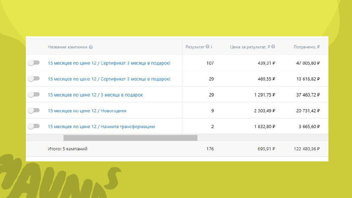 Когда ты четко знаешь, на какие рычаги нужно нажимать, как преподносить оффер, какой длины оптимально делать лид-форму и еще множество мелочей, результат становится прогнозируемым, но от этого не менее приятным. CPL стал стоить клубу на 76% меньше, а лидов стало в 3,4 раза больше! Надеемся, премию маркетологу World Class за это уже выписали :)
