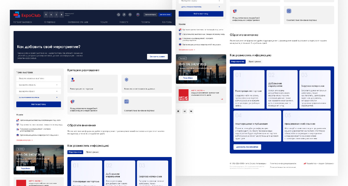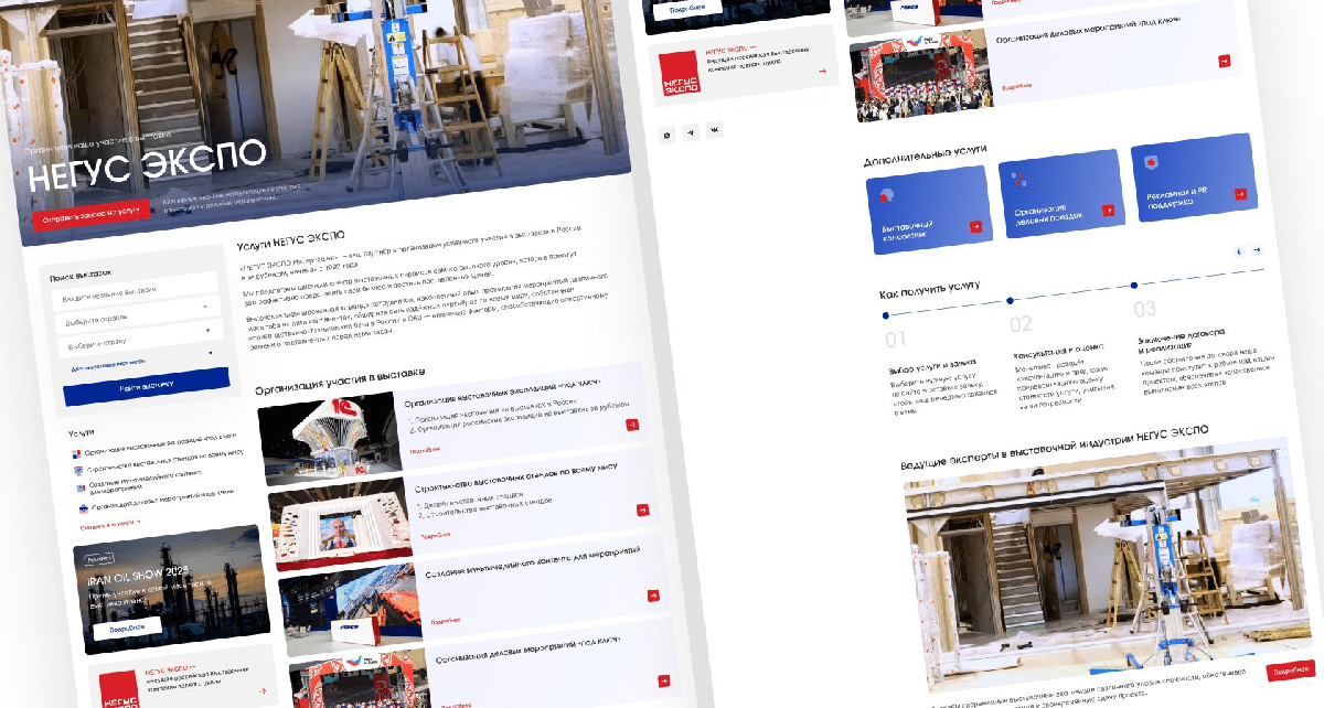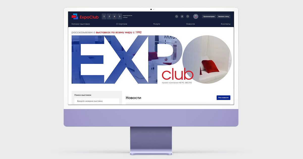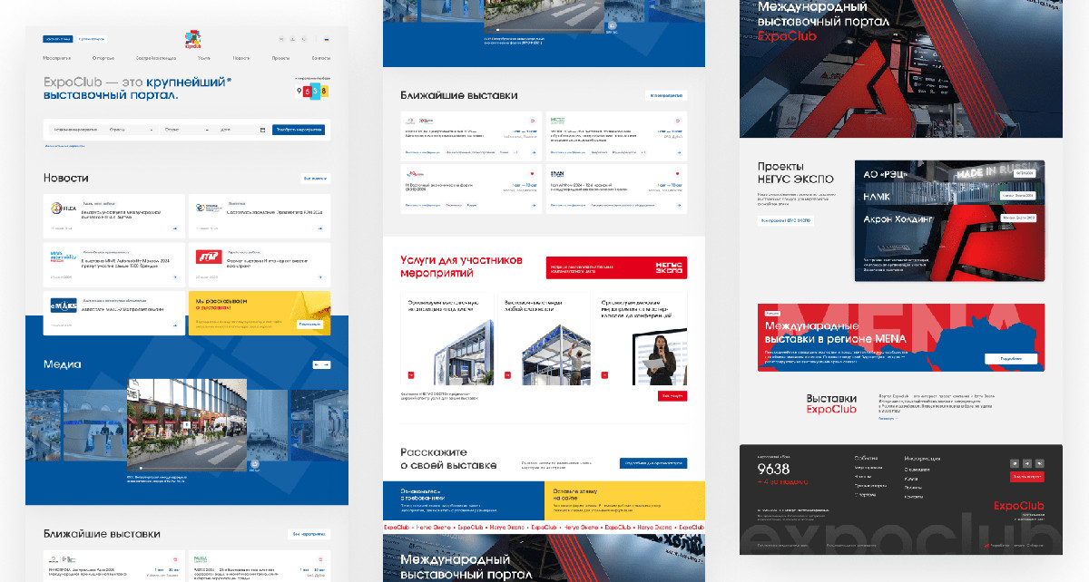 Основная задача — объединить в одном ресурсе информационный портал о выставках и корпоративный сайт производителя стендов. Мы выстроили логику, при которой Expoclub не просто публикует новости и календарь мероприятий, но и подталкивает пользователей к взаимодействию с компанией «НЕГУС ЭКСПО Интернэшнл».