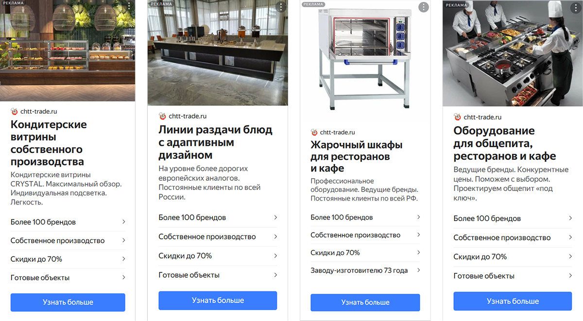 Компания, занимающаяся проектированием и комплексным оснащением объектов общественного питания (HoReCa). Продажи осуществляются через профильный сайт, ориентированный на рестораны, кафе и столовые.