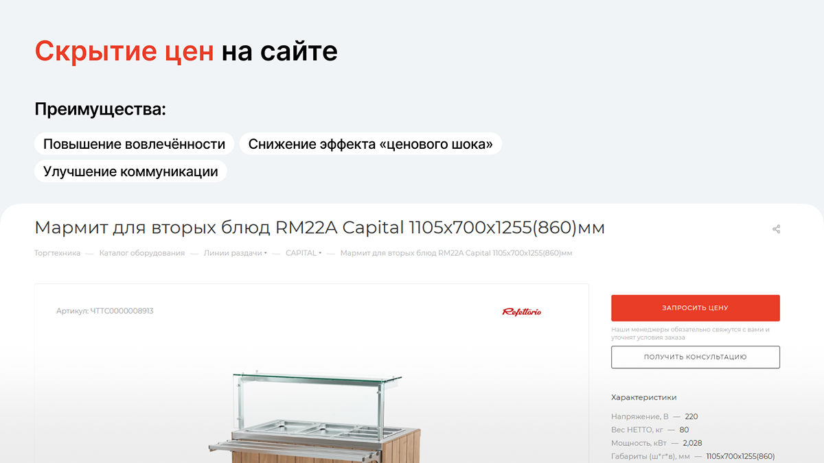 Это становилось барьером для потенциальных клиентов на этапе первичного знакомства с предложением, особенно при открытом отображении цен на сайте.