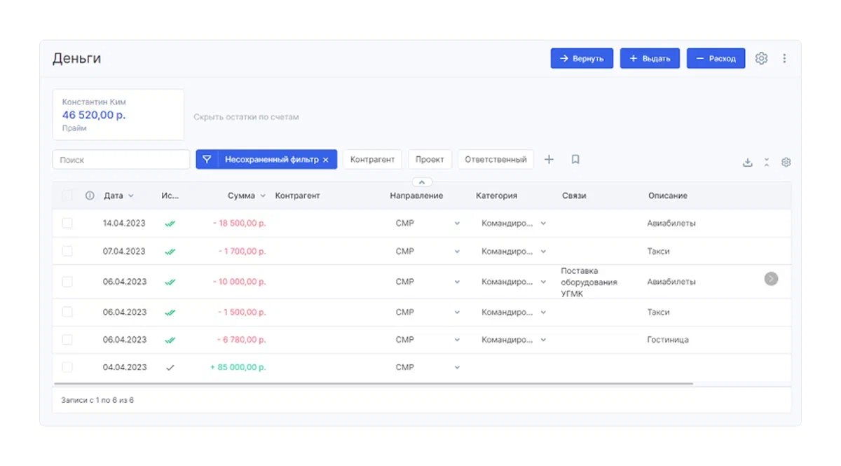 Все операции синхронизируются, и финдиректор видит, на что ушли средства.