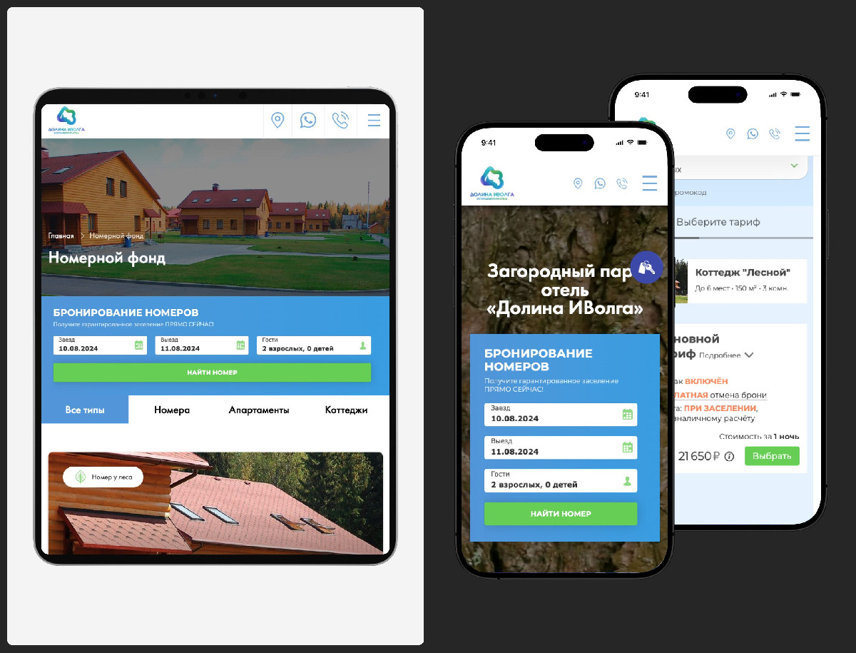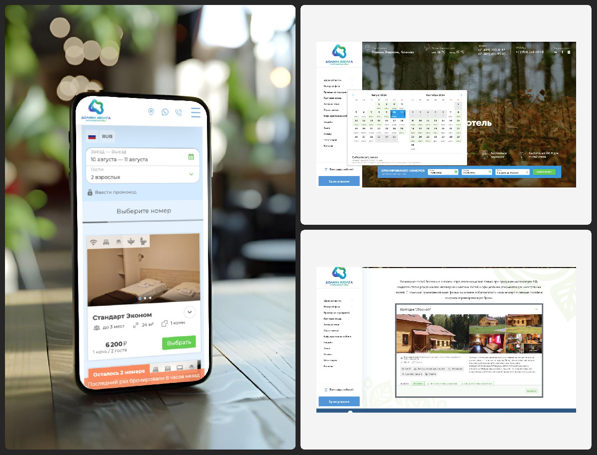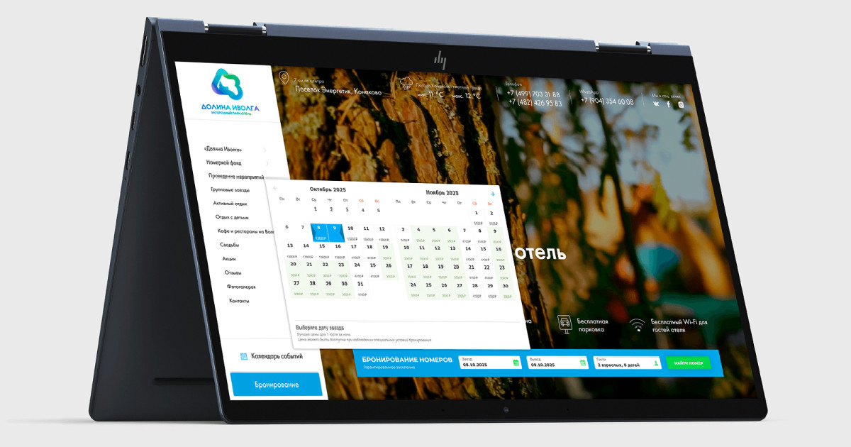 Разработан корпоративный сайт для парк-отеля «Долина Иволга» с адаптивным дизайном и удобной навигацией. Реализована интеграция с TravelLine для автоматизации бронирования и управления номерами, что повышает конверсию, упрощает процессы и улучшает пользовательский опыт гостей.