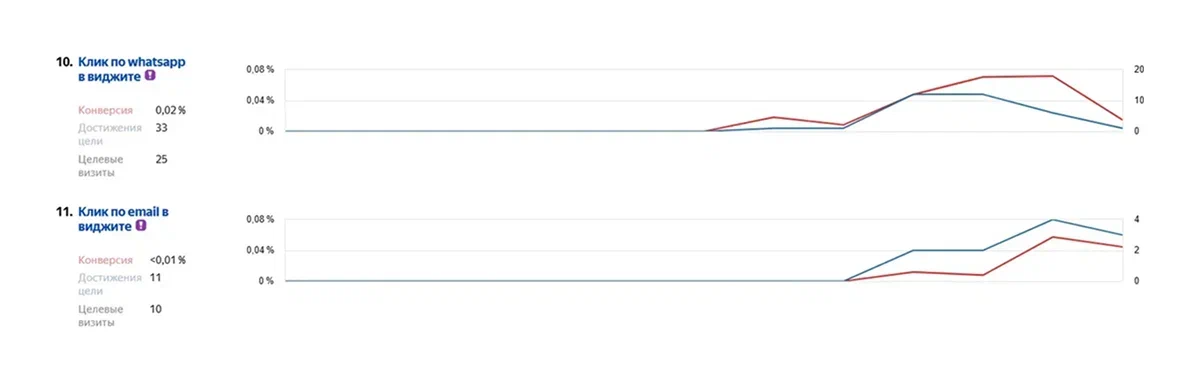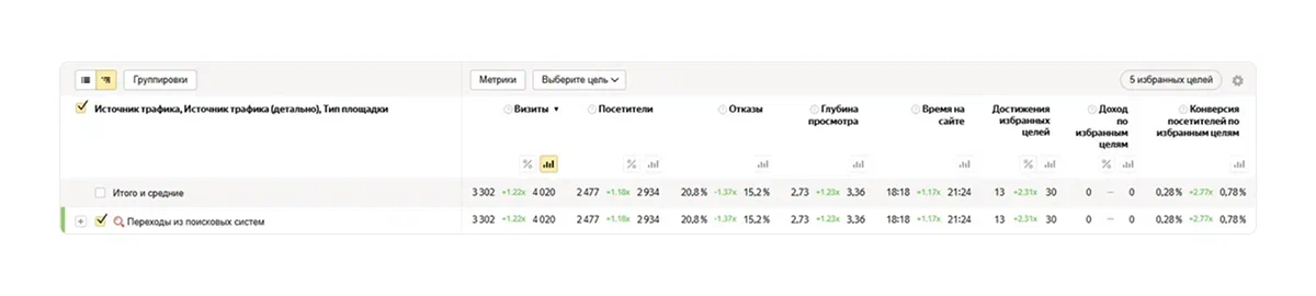 - Увеличение конверсии по избранным целям в 2,5 раза