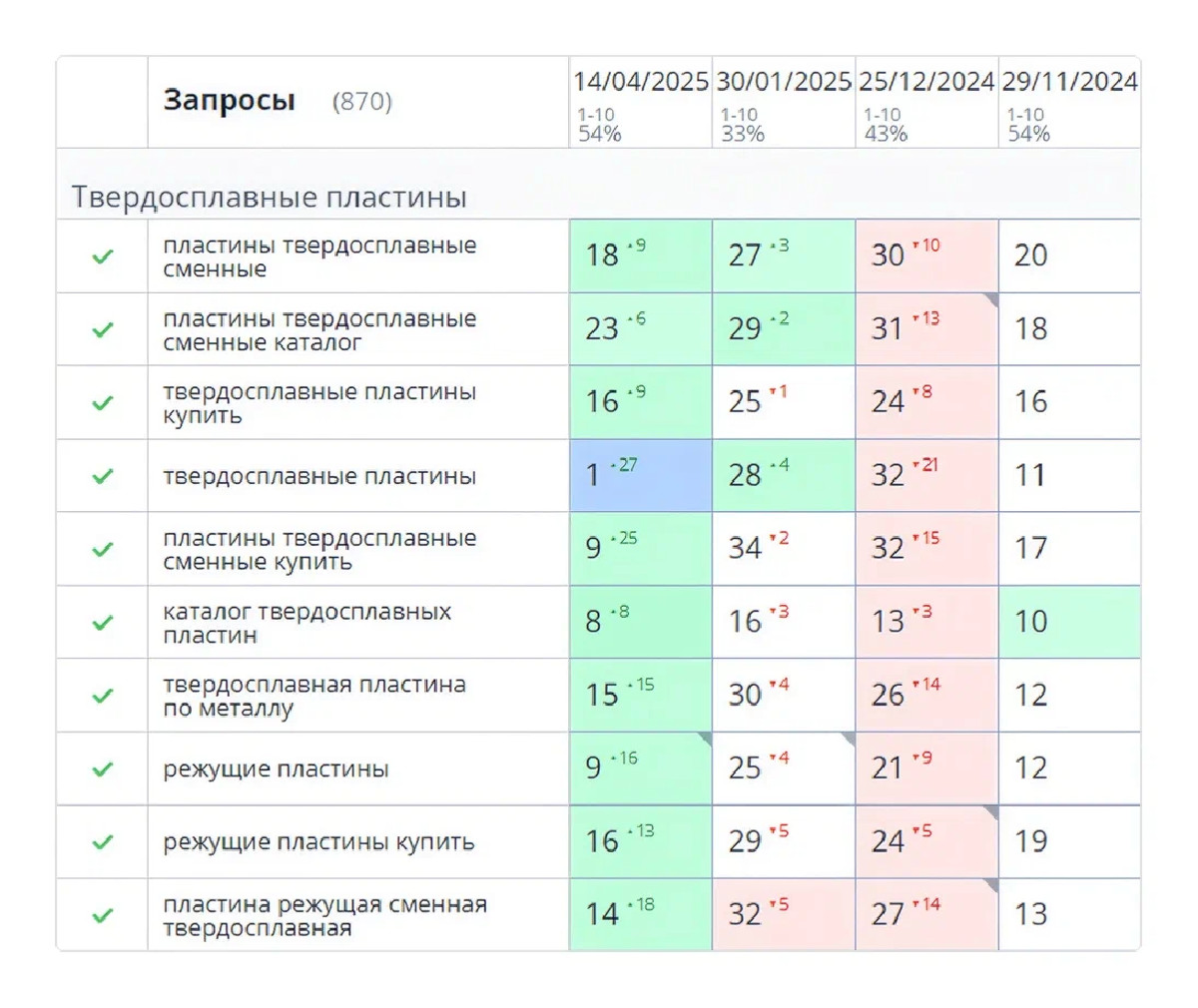 Команда сформировала расширенное семантическое ядро, которое легло в основу контентной стратегии. Для мониторинга эффективности была настроена система отслеживания позиций в Topvisor.