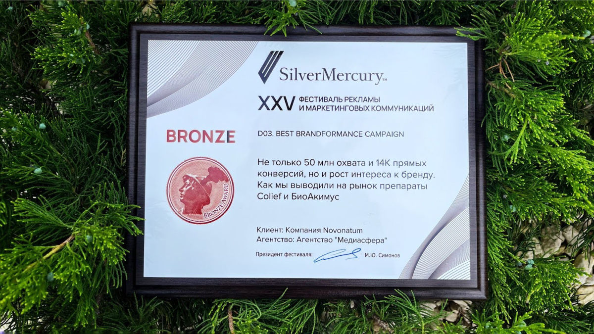 В 2024 году брендформанс кампания бренда Novonatum в ПромоСтраницах получила бронзовую медаль конкурса Серебряный Меркурий в номинации «Лучшее в Digital»