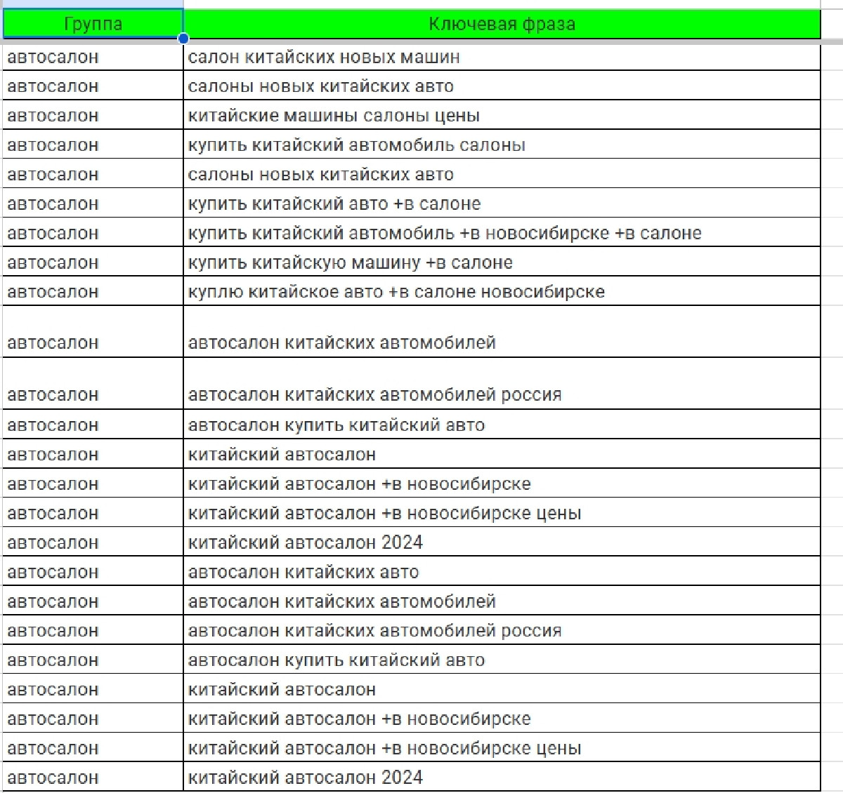 - РСЯ — общие запросы (запросы по продаже китайских автомобилей и продаже имеющихся в наличии марок автомобилей).