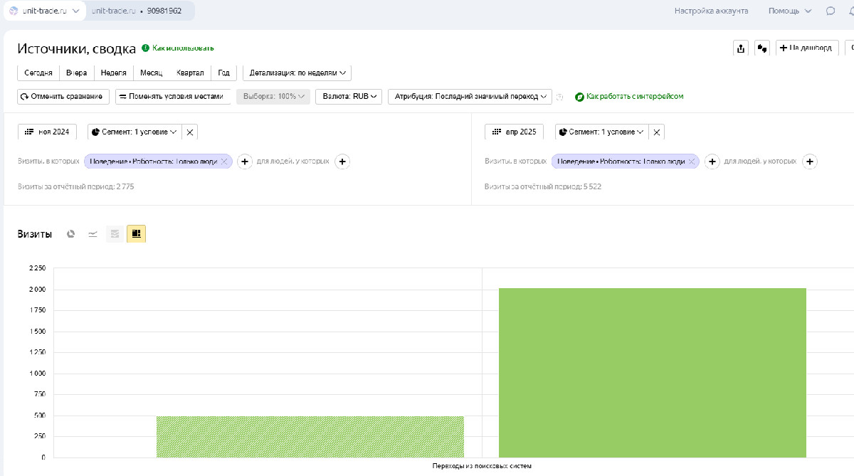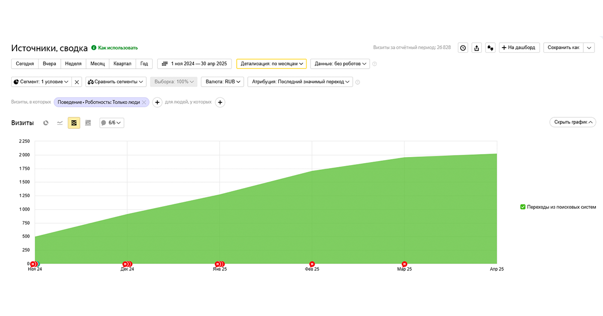 Сравнение объема трафика из поиска за ноябрь 2024 с апрелем 2025