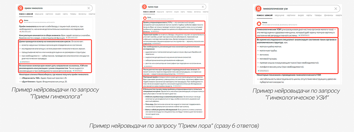 Вывод сайта медицинской тематики в нейроответы