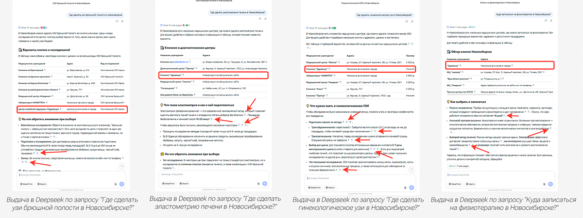 Регион: Новосибирск. Тариф: продвижение по трафику. Срок: 3 месяца. Задача: вывести запросы и бренд в генеративные ответы AI чатов и поисковых систем. Результат: заняли первые позиции в 0 блоке нейровыдачи по информационным запросам, попали в нейросети по коммерческим запросам