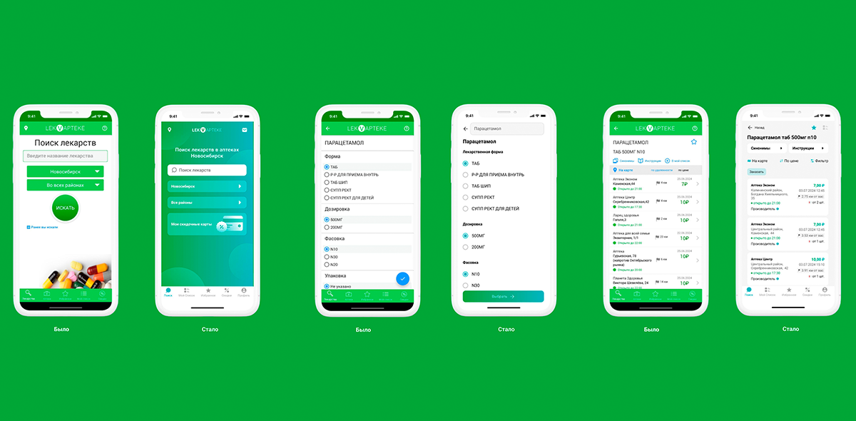 Основной целью было создать интуитивно понятный и приятный интерфейс, который обеспечит пользователям комфортный процесс поиска, выбора и заказа лекарств. Так как это уже действующее приложение, мы сохранили привычные для пользователей сценарии. В процессе создания приложения мы углублялись в логику работы бизнеса и смогли выявить возможности для улучшения основных пользовательских сценариев. Кроме этого, мы освежили пользовательский интерфейс, сделав его более современным. В дизайн добавлены новые иллюстрации, немного переработан стиль приложения, улучшена его визуальная составляющая но при этом сохранена интуитивность и легкость восприятия.