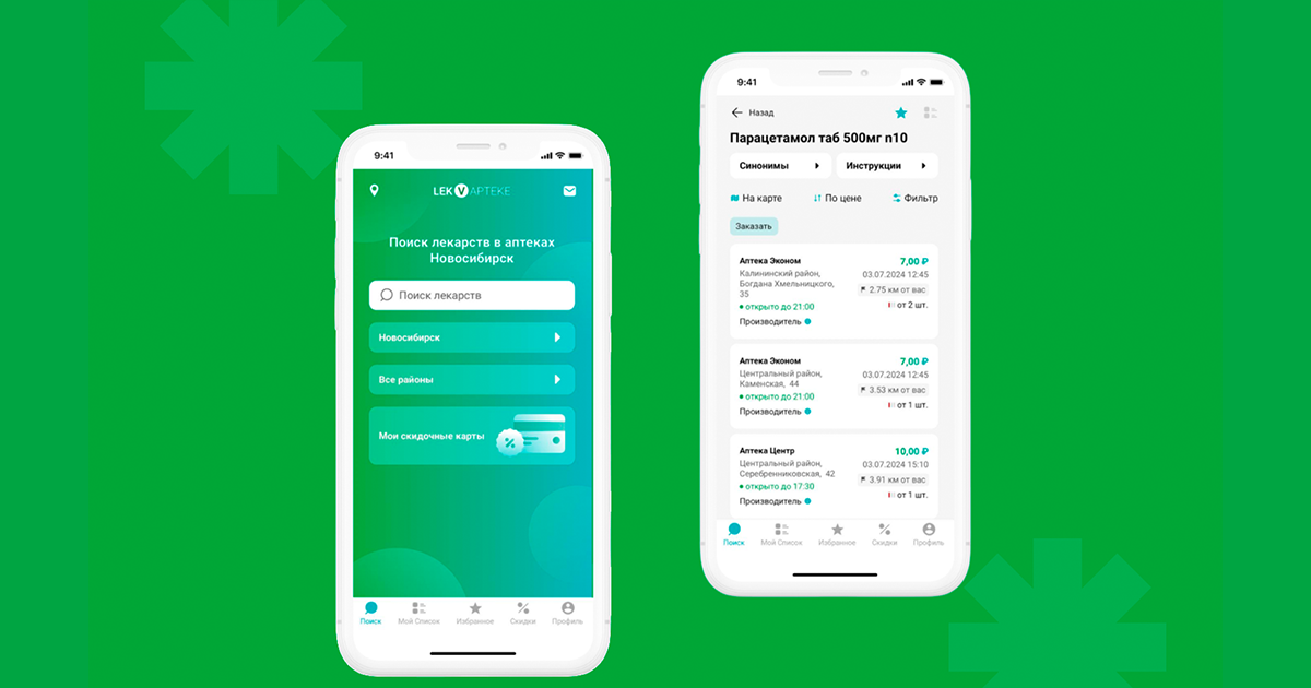 LekVapteke (ООО «Лекваптеке») — сервис для поиска лекарств в аптеках Сибирского федерального округа с возможностью сортировки по цене и расстоянию, сохранения в избранное и создания списков для удобного поиска.