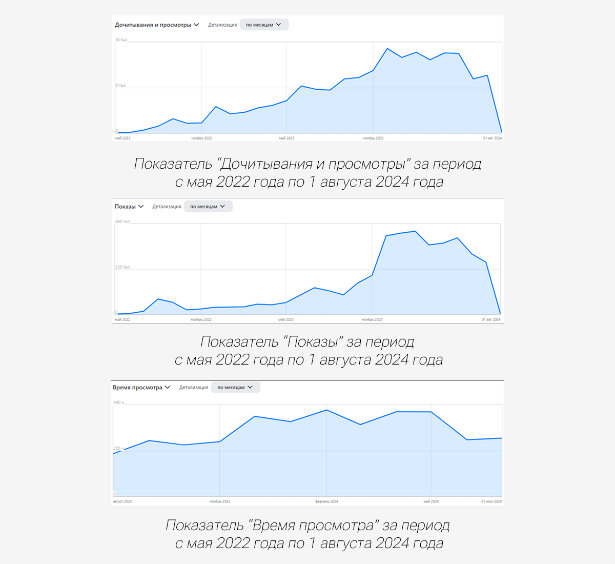 Канал получил более 4 млн показов, на 1 августа 2024 года у канала почти 2 тысячи активных подписчиков — и все это без рекламы.