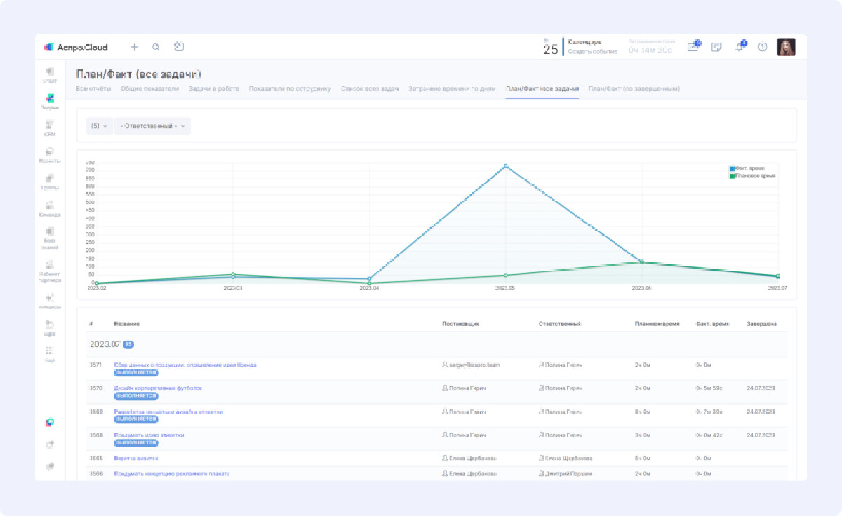 - Прозрачный контроль планового и фактического времени выполнения задач