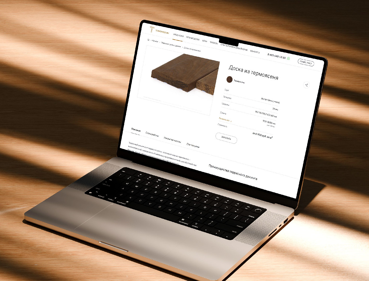 Онлайн-каталог компании «Термоясень» стал удобной и надёжной платформой для презентации продукции. Удобный каталог, подробные описания и информация о преимуществах повысили доверие клиентов. Сайт способствовал увеличению числа заказов и укреплению имиджа компании как надёжного производителя качественной термодревесины и фасадной доски.
