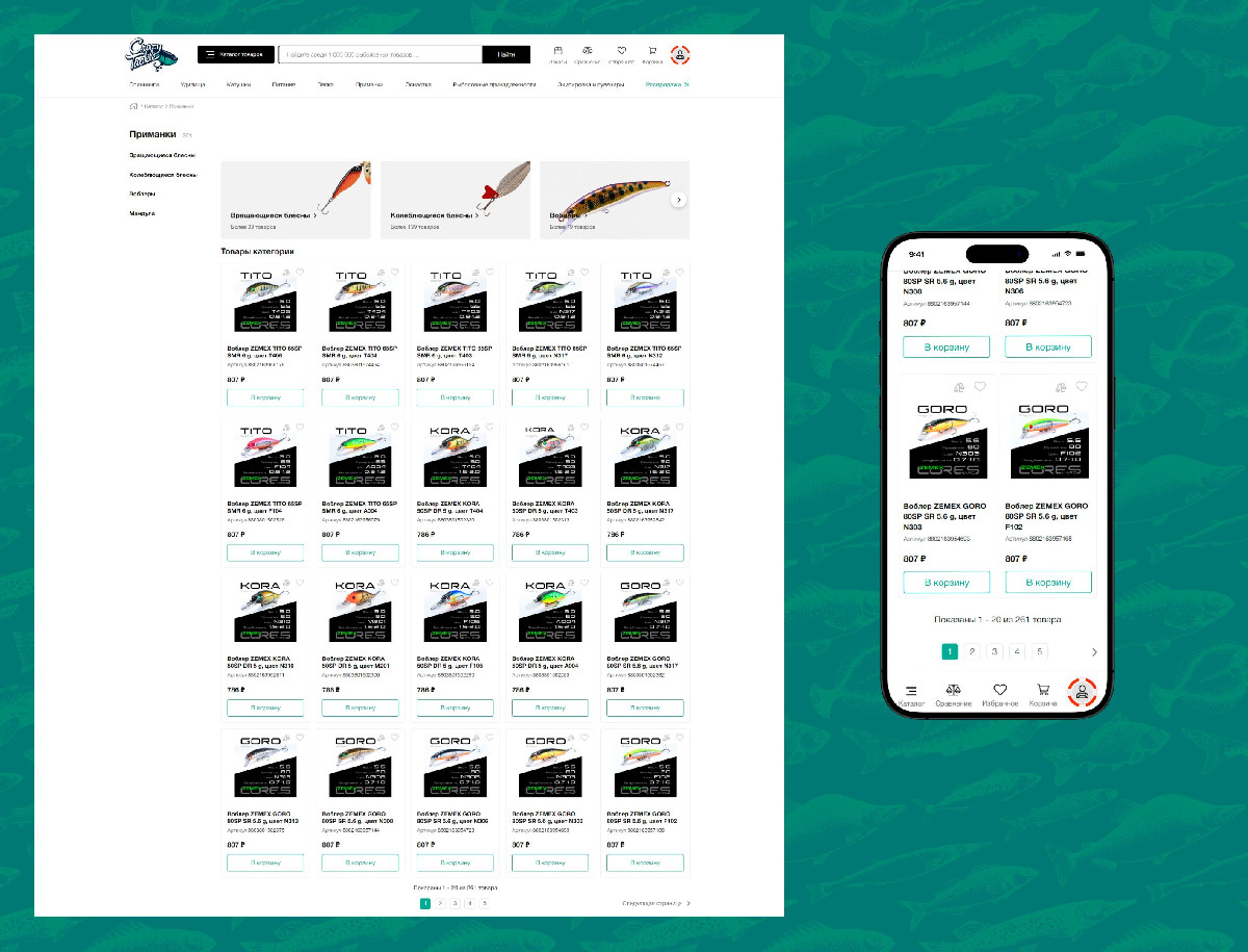 В результате плодотворного сотрудничества был создан современный интернет-магазин "Crazy Tackle", который стал официальной торговой площадкой для брендов ZEMEX и METSUI ORANGE LIFE. Благодаря реализации удобного каталога с фильтрацией, детальных карточек товаров и адаптивного дизайна, магазин обеспечил покупателям комфортный процесс выбора и покупки рыболовных товаров. Интеграция системы доставки по всей России и за рубеж значительно расширила географию продаж компании.