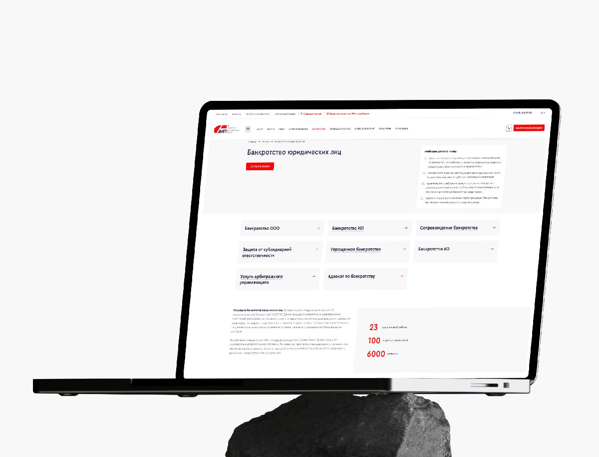 Разработка корпоративного сайта для аудиторско-консалтинговой группы «Аудит и право», одной из ведущих компаний России в области аудита, налоговых и юридических услуг. Основная цель — создать представительный и современный ресурс с продуманной структурой, который бы упрощал навигацию по сложной юридической информации, делая её доступной для восприятия.