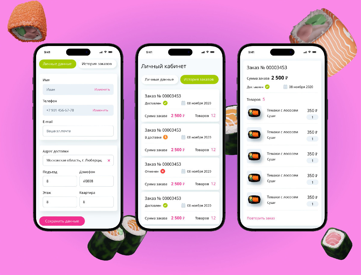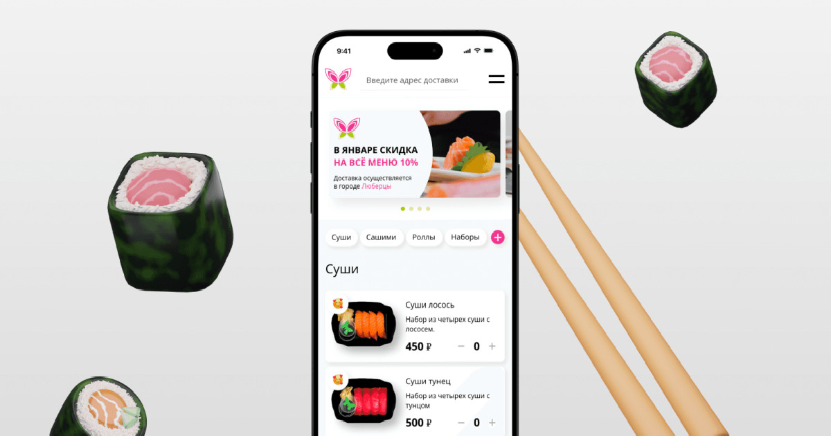 Разработан современный сайт для доставки суши. Создан удобный интерфейс с быстрым заказом, адаптивный дизайн и интеграция с системой управления. Решение упрощает выбор блюд, ускоряет оформление заказов и повышает лояльность клиентов.