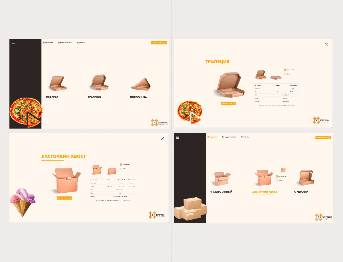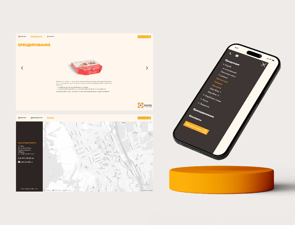 Разработка Landing Page, которая представляла бы комбинат и его продукцию в Интернете. В наши задачи входила разработка общей концепции и прототипов, а также программирование и релиз проекта. Особенность сайта – в наличии товарных карточек для каждого из видов коробок и возможность оформления заказа через него.