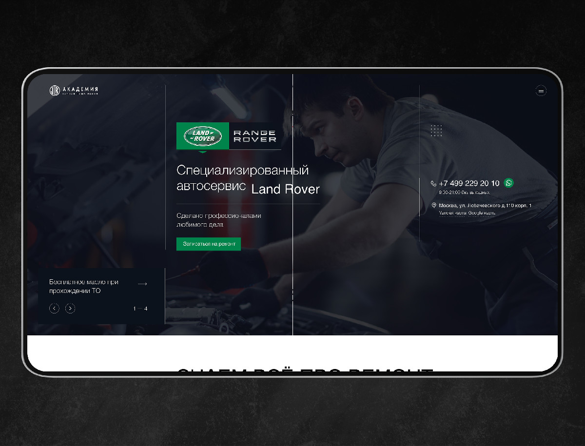 Создан минималистичный и современный дизайн, отражающий премиальность бренда Land Rover и профессионализм сервиса.