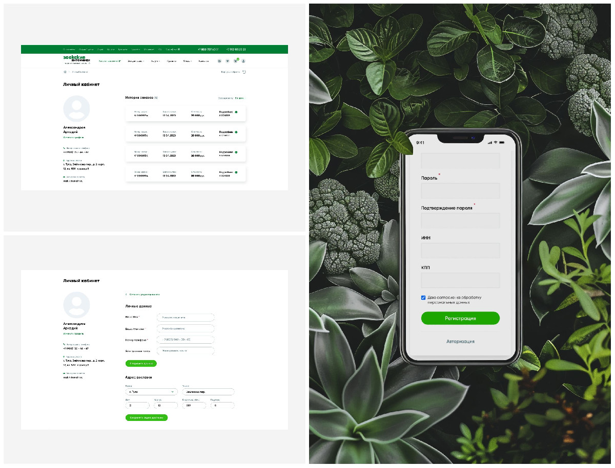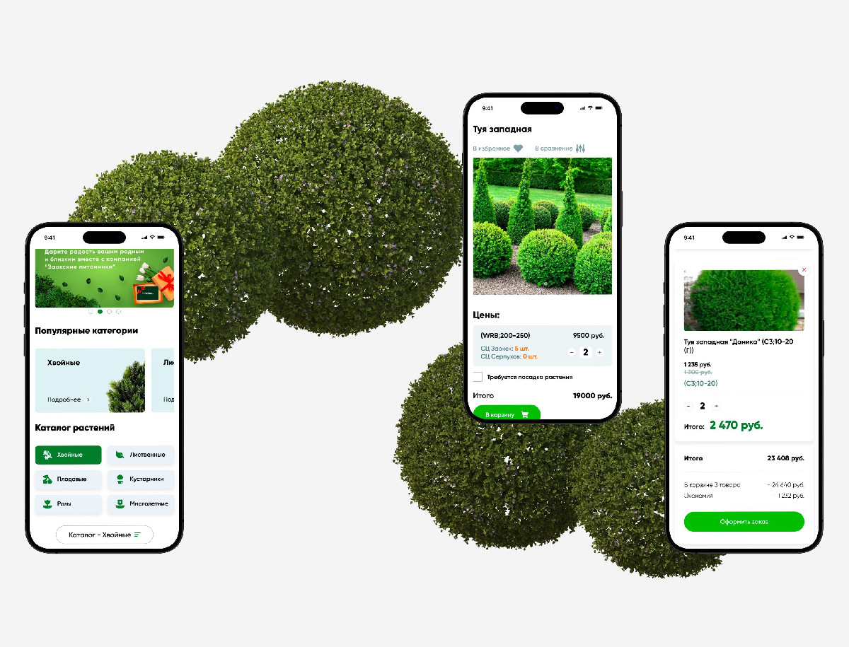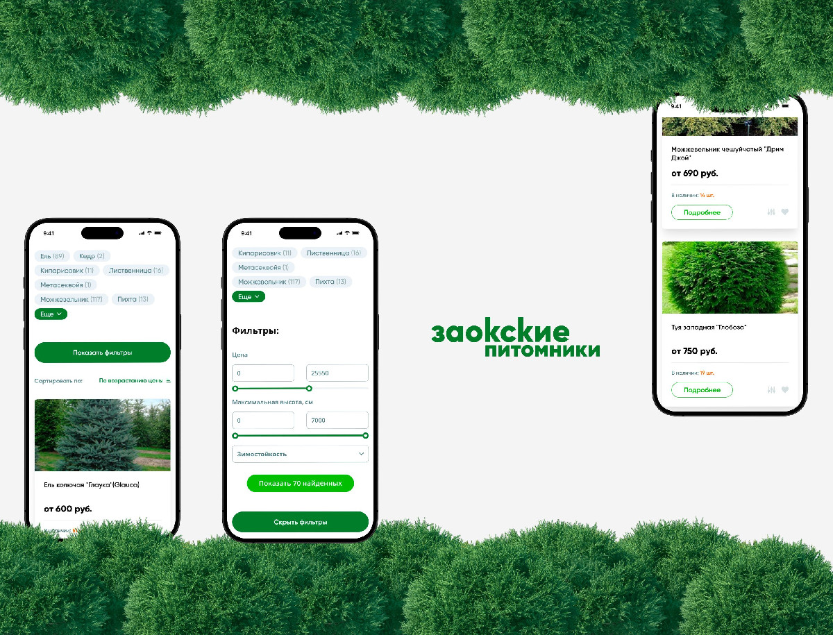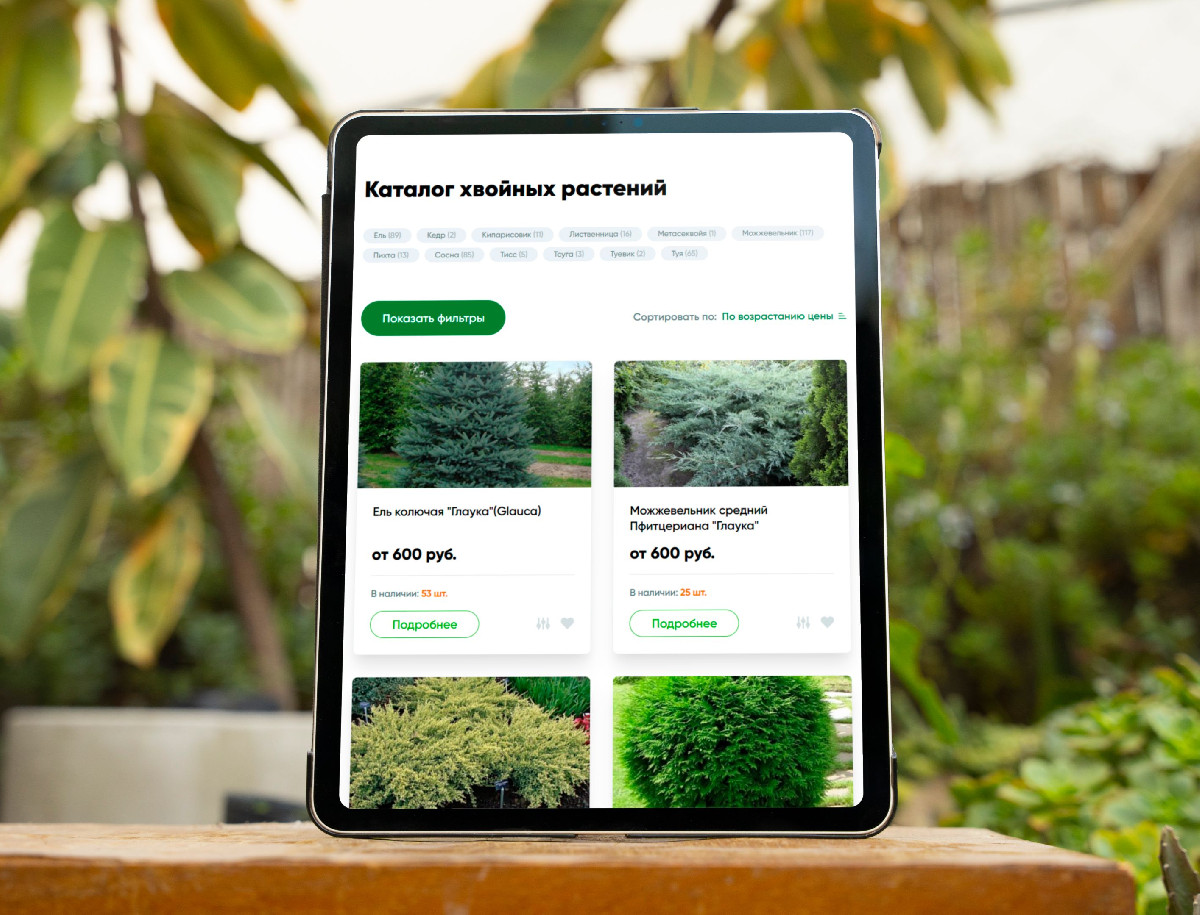 Проведенный редизайн интернет-магазина позволил создать современный и эргономичный веб-ресурс, полностью соответствующий актуальным стандартам пользовательского опыта. Новый дизайн органично сочетает фирменный стиль компании с продуманной структурой и навигацией, что обеспечивает клиентам быстрое и комфортное взаимодействие с каталогом растений. Благодаря детализированным описаниям, качественным фотографиям и интуитивной системе фильтрации, сайт эффективно демонстрирует ассортимент и помогает пользователям в выборе. Интеграция природных визуальных элементов усиливает тематическое восприятие, подчеркивая натуральность продукции. В результате проект значительно повысил вовлеченность и доверие клиентов, а также способствовал росту конверсии, укрепив позиции магазина на рынке.