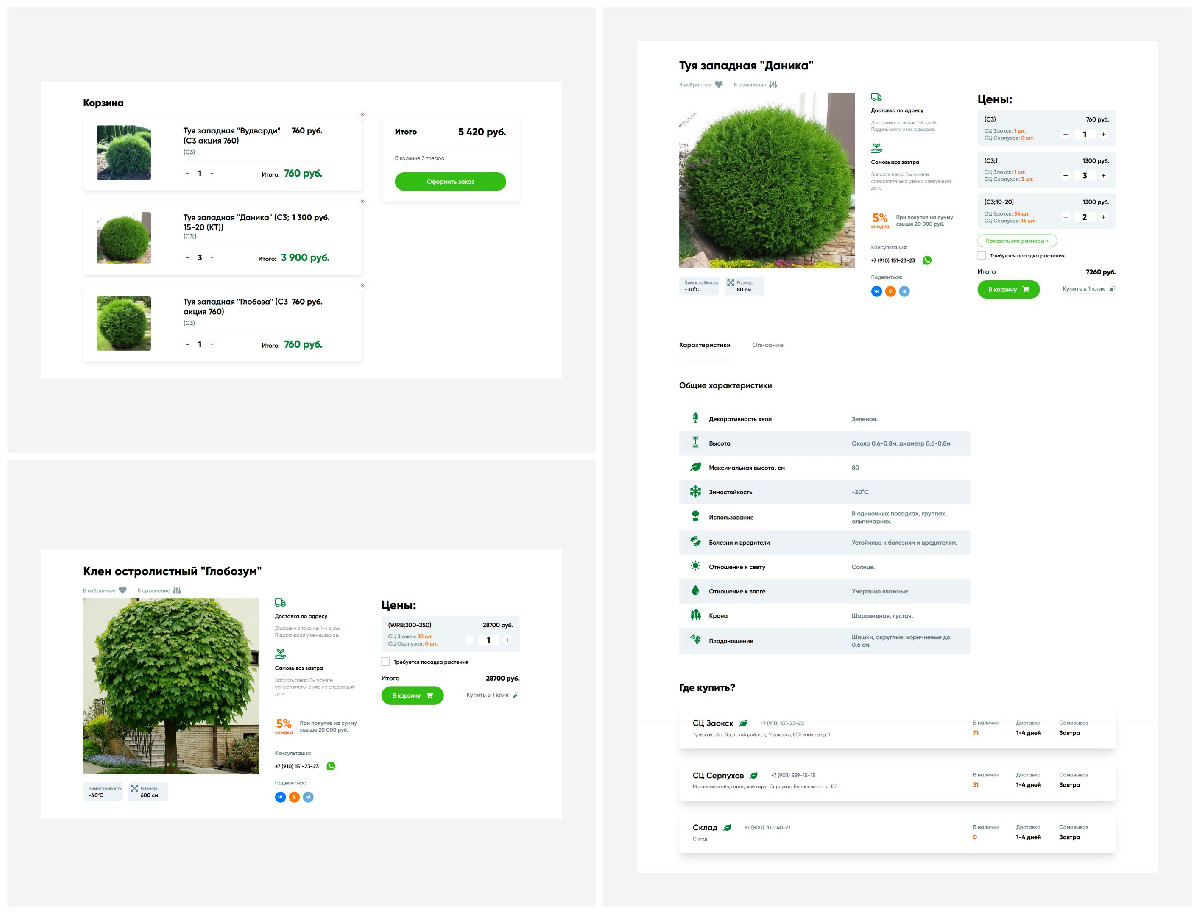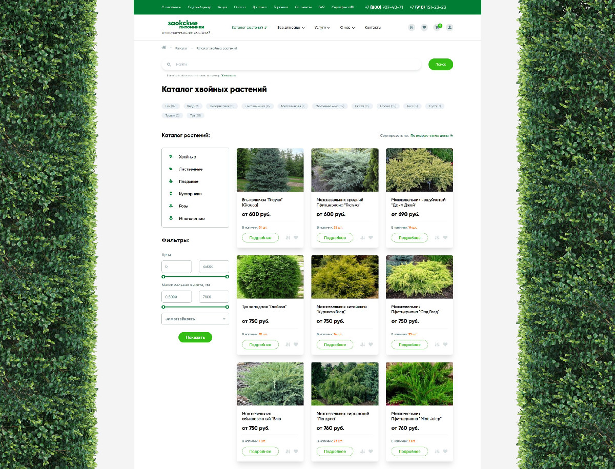 Провести редизайн старого интернет-магазина, чтобы создать современный, чистый и удобный сайт с каталогом растений. Новый ресурс должен соответствовать фирменному стилю компании, обеспечивать быструю навигацию и привлекать клиентов качественным контентом и визуальным оформлением.