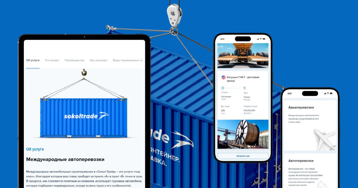 В рамках сотрудничества был успешно разработан и запущен современный веб-сайт для логистической компании «Сокол Трейд». Созданный ресурс полноценно отражает масштаб деятельности компании и ее ключевые преимущества. Благодаря реализации интерактивного калькулятора стоимости перевозок и оптимизированной структуры разделов, пользователи получили удобный инструмент для самостоятельного расчета услуг и быстрого оформления заказов. Интеграция адаптивного дизайна и SEO-оптимизация обеспечили корректную работу сайта на всех устройствах и повысили его видимость в поисковых системах.
