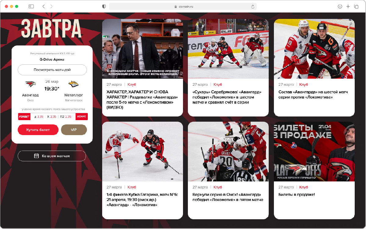 ХК «Авангард» перезагрузился: как мы заложили новый стандарт сайтов для хоккейных клубов