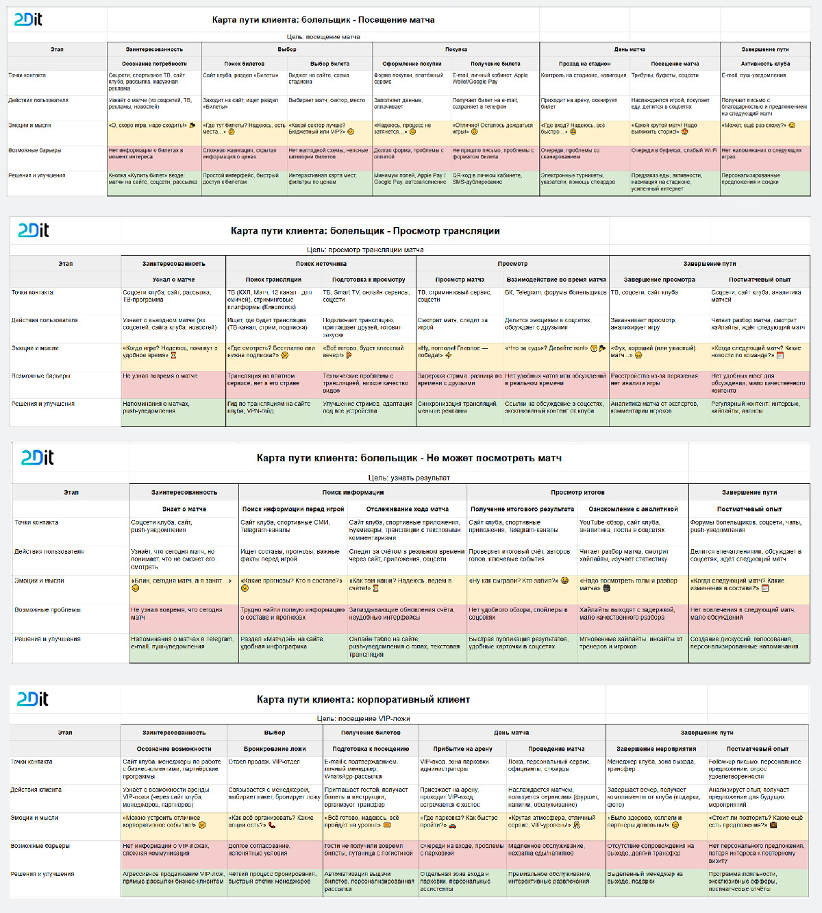 После чего были составлены Карты пути клиента (Customer Journey Map) — для 4 основных сценариев: