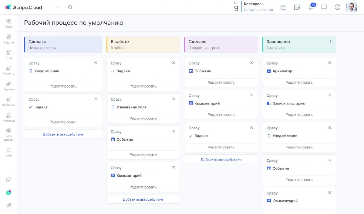 Основной целью стал переход на единое решение Аспро.Cloud для улучшения сервиса и организации работы с задачами и проектами. Требовалось создать прозрачную систему контроля процессов и автоматизировать рутинные операции.